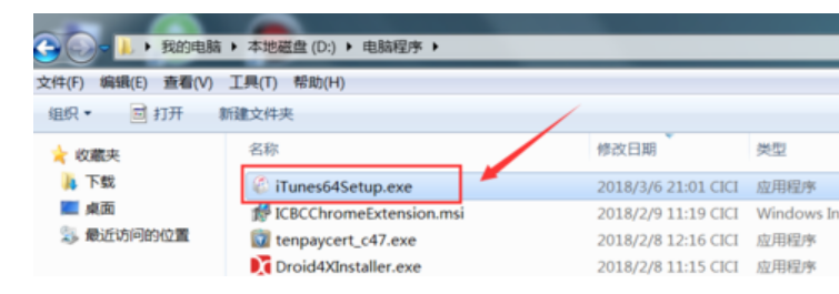 4、下载后保存文件到电脑上,在文件夹中找到itunes软件的exe文件,双击运行。