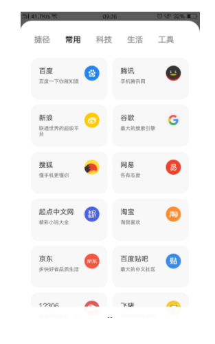 其次,页面简约,界面里只有搜索框,几个网站直通图标,还有下方的工具栏