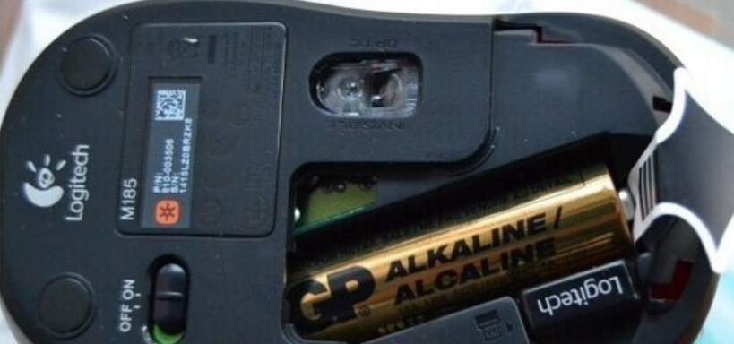 1、首先将买来的无线鼠标电池后盖打开,会看到无线接收器和电池以及绝缘条。注意:把电池绝缘条撕下,这样就能接通鼠标电源,让鼠标开始工作了。