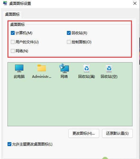 3、在桌面图标设置中我们选择想要在桌面上显示的图标,然后点击确定。