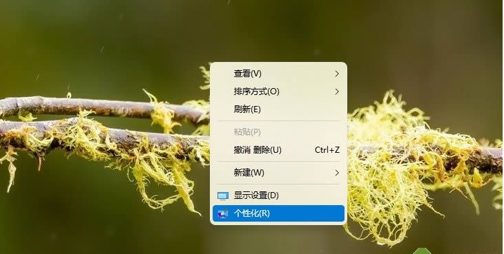 1、首先在windows11桌面空白处右键,然后选择个性化设置。