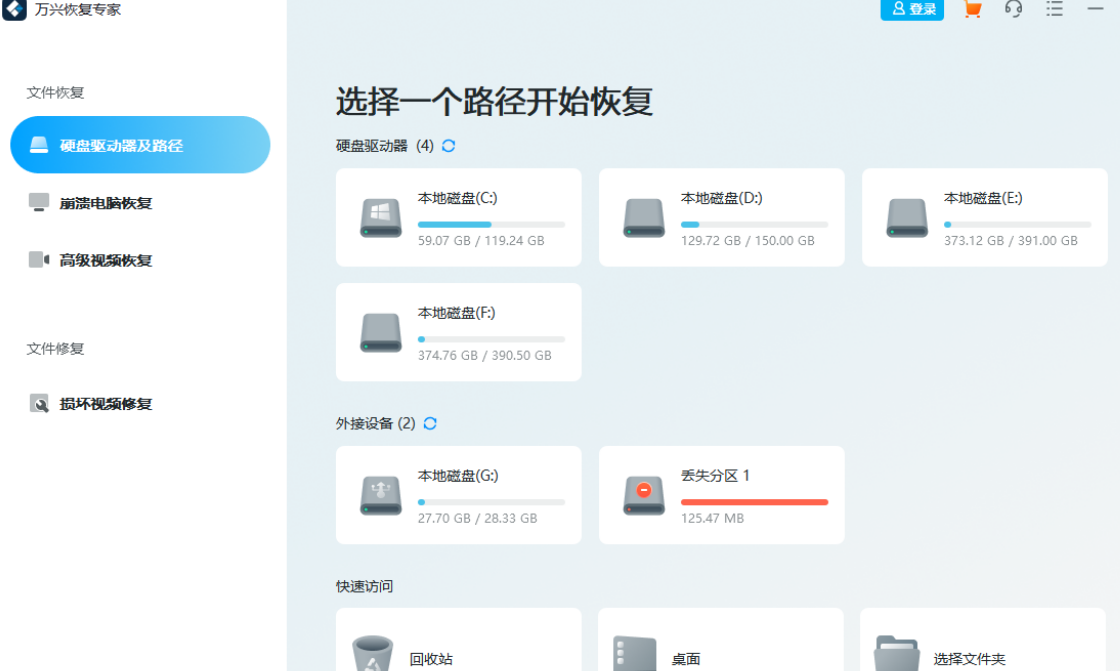 万兴恢复专家是一款专门致力于数据恢复的软件,除了会员版之外还有免费版本,Windows用户可获得累计100M的免费额度,非常适用仅需要恢复单个Word文档或Excel表格的用户。