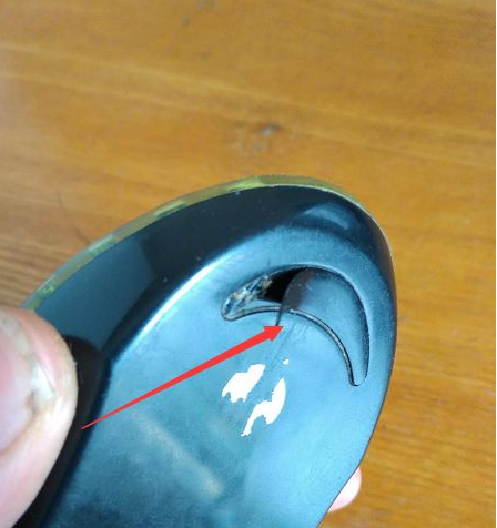 1.首先用手抠开鼠标左右键,可以看到有一个凹陷的卡扣。