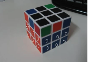 四侧面顶层两边方块对位,指的四侧面上层两角的方块归位,归位并不是指颜色要对上,只要这块的颜色和所在的三个面的颜色相对应就行。