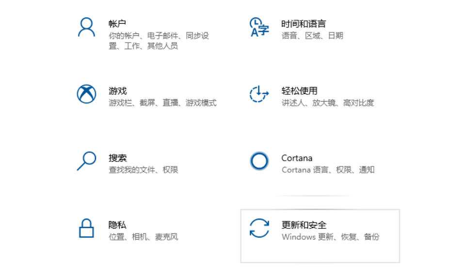 1、电脑开机进入系统后,我们按快捷键 Win+I 打开设置界面,然后选择更新和安全。