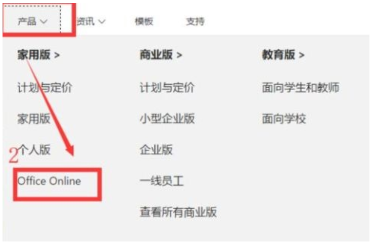 第三步:接着在弹出的界面,点击产品,进入office online界面(如图所示)。