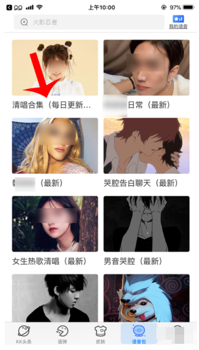 3、选择喜爱的语音包打开,点击喜爱的选项空白位置。