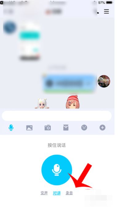 6、选择右下角录音,按住红色录音按钮进行录音。