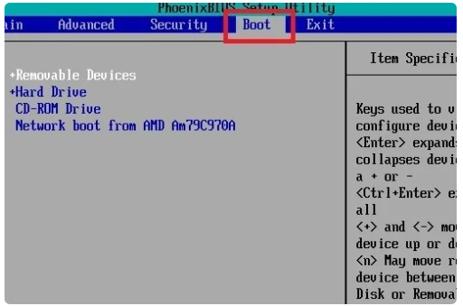 4、连按两下键盘上的"+"键,使CD-ROM Drive(光驱)位于最上方。