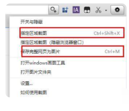 这是360.高速浏览器为例,指定区域截屏为Crrl+Shift+X。完整网页截屏为Crrl+M”。
