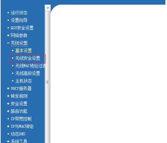 2、进入路由器的服务器,选择无线设置-无线安全展开。