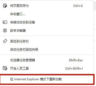 5.在其中选择“在internet explorer模式下重新加载”,这样我们就成功打开edge浏览器兼容性设置了。