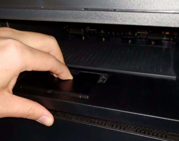 4、然后紧紧按住卡扣,拔出即可拿出旧墨盒。