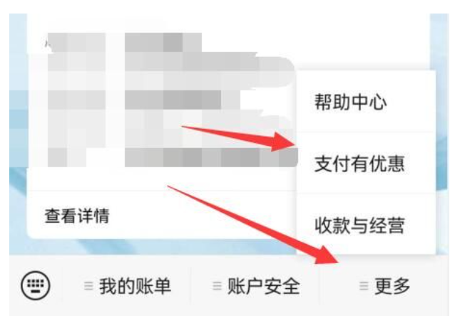 2、点击右下角“ 更多 ”,选择“ 支付有优惠 ”