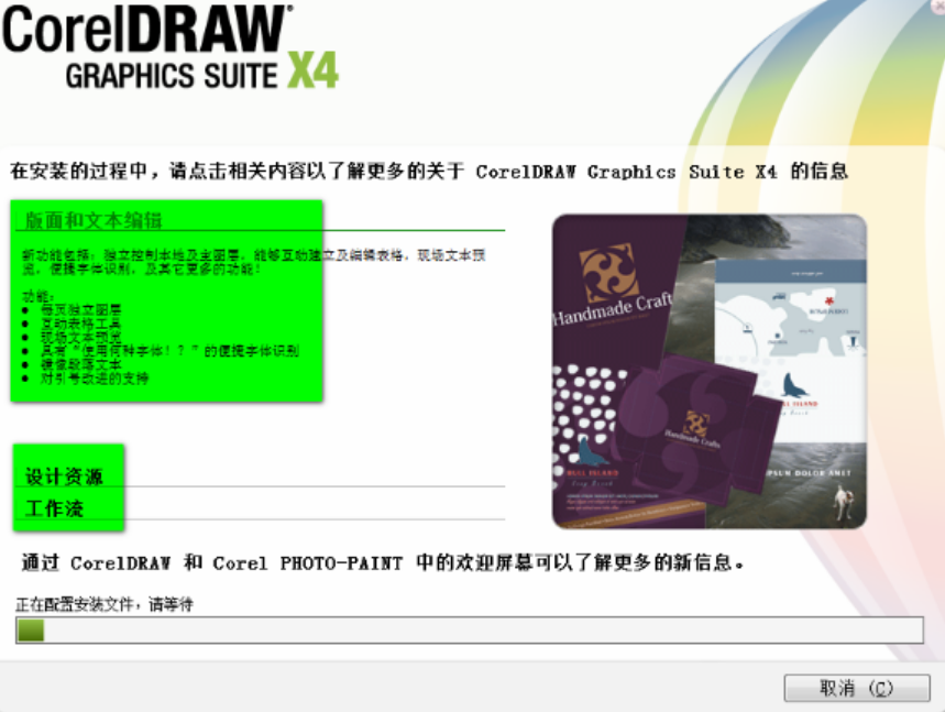 进入到CorelDraw X4的安装进度条界面等待安装;