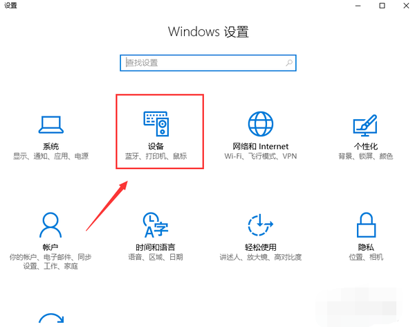 1、打开电脑桌面下方的开始菜单,点击“设置”进入,然后选择“设备”打开。