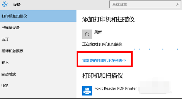 3、然后等待一会,点击"我需要的打印机不在列表中"。