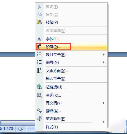 5、如果空白而是文档的最后一页,则需要将鼠标放在前一页的最后,用DEL健删除。或者如果鼠标只在第一行,可选右键选择“段落”命令,将这一行的行距设为固定值1磅,该空白页将自动消失。