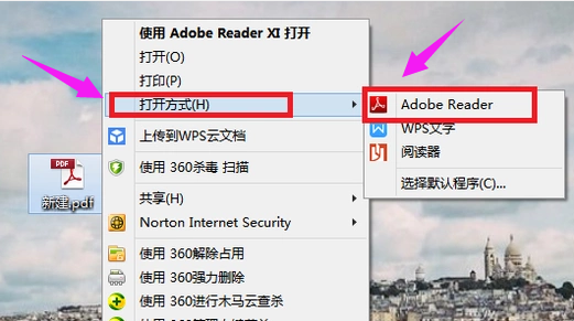 3.安装完成后,右击我们要打开的pdf文件,选择打开方式,点击“Adobe Reader”即可打开。