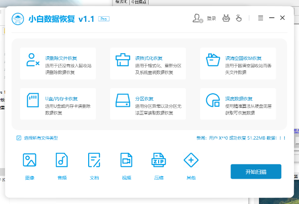 小白数据恢复工具提供误删文件恢复、硬盘数据恢复、U盘数据恢复等服务,支持快速扫描恢复文件数据,并覆盖多种恢复场景,可轻松恢复多种数据,操作简单、功能强大。