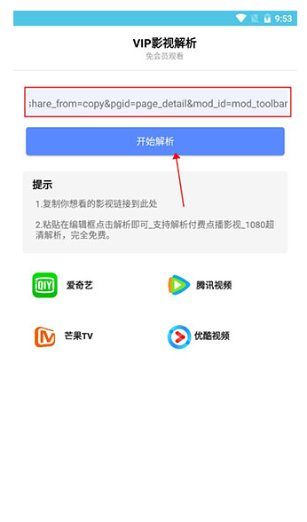 2、复制后点击开始解析。