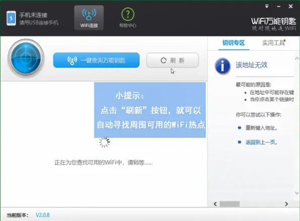 1、打开WIFI万能钥匙电脑版,点击刷新;