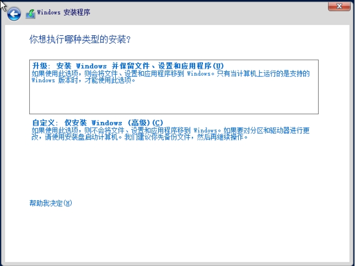 7. 点击“自定义:仅安装Windows(高级)”。