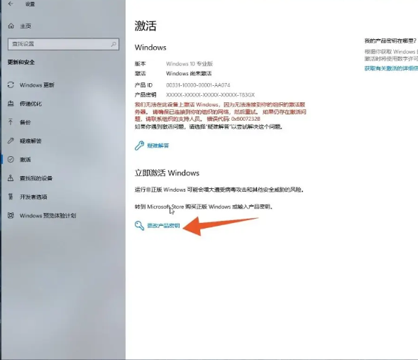 2、在激活下点击更改产品密钥;
