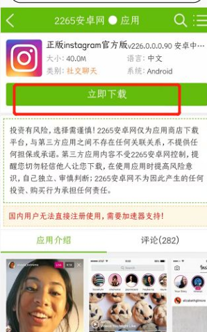 Instagram是一款在国外很受欢迎的拍照类型的社交软件平台,不少国内的小伙伴都想下载这款软件,和国外的网友进行互动。那么安卓怎么下instagram呢?下面就和小编一起来看看安卓下载Instagram的教程吧。