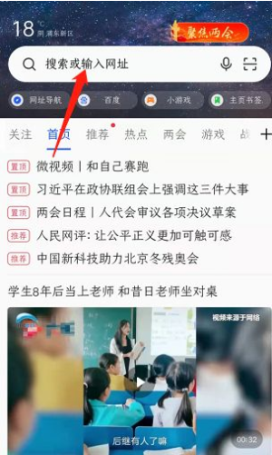 1、打开手机的浏览器,点击搜索框。