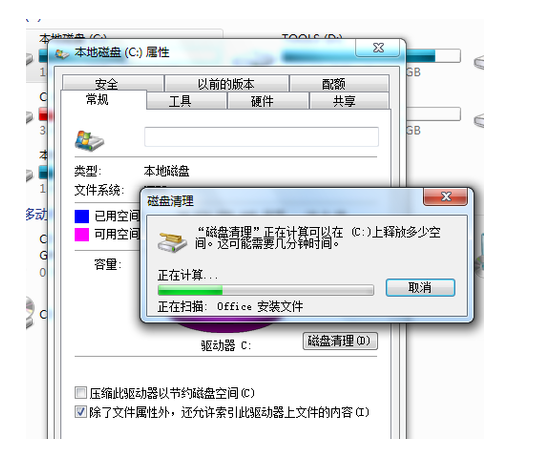 1、进入c盘的属性界面,开始清理磁盘。