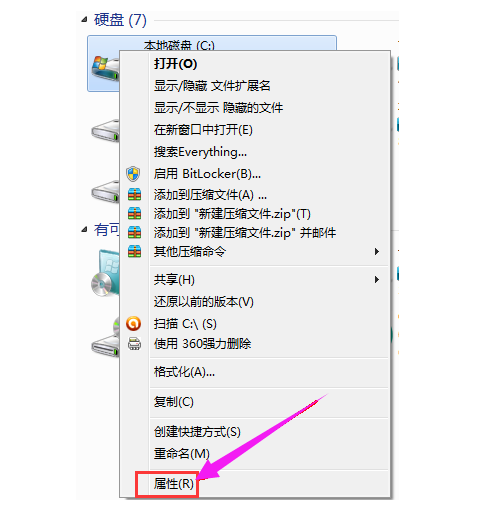 1、进入c盘右击选择属性。