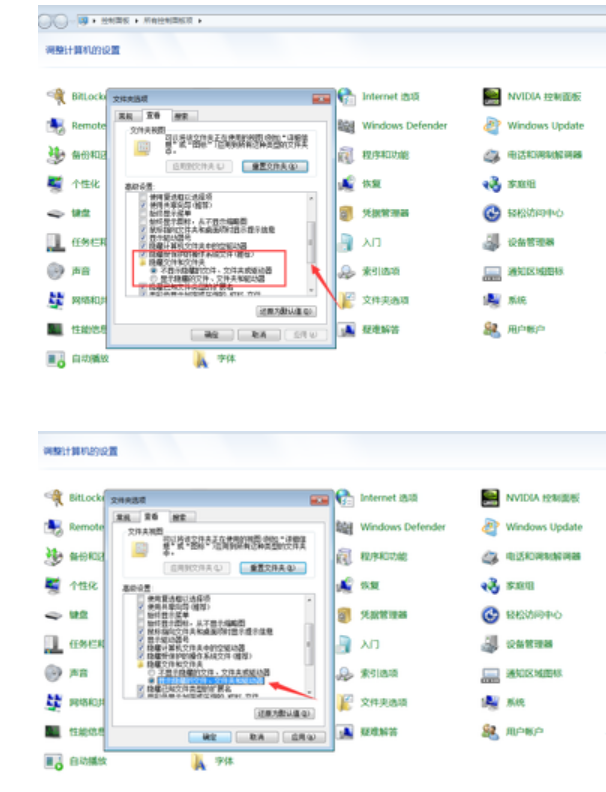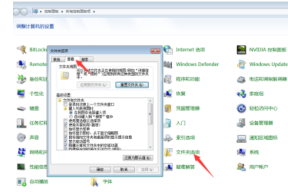 打开开始菜单的【控制面板】的【文件夹选项】,点击【查看】;