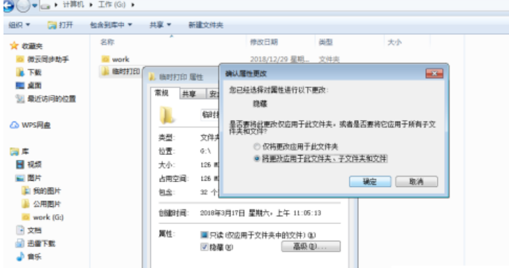4. 确定后文件夹将变更为灰色处于隐藏状态。