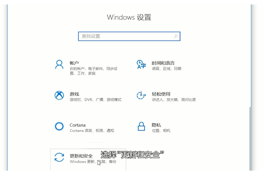 2、选择最下方的“更新和安全”