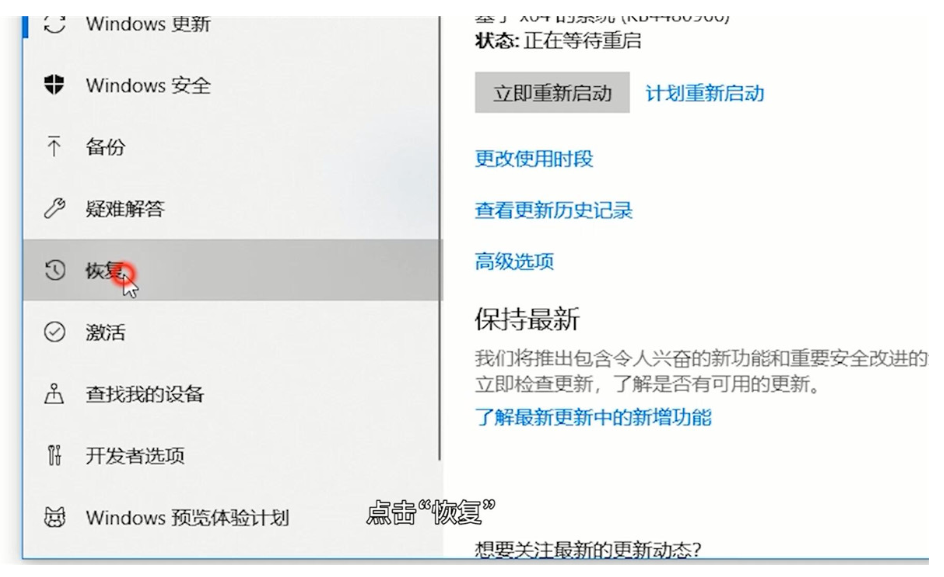3、点击“恢复”