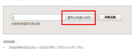 3、如果您需要使用商务型账号,也能注册“......@foxmail.com”这样的商务型账号。