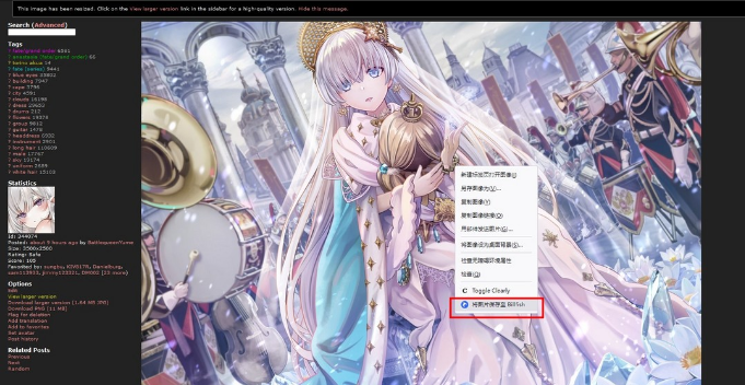网站是以分页的方式展示图片,交互一般,但是二次元图片质量都很高,可以通过另存为的方式,保存下载高质量原图,在图片详情页左显示,还有图片来源、尺寸等信息详细介绍。
