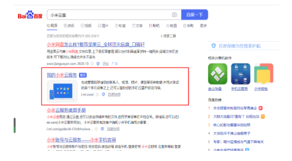 1、浏览器搜索“小米云盘”,进入“我的小米云服务”官方网站。