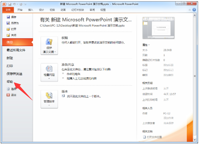 1、打开任意的office软件,这里以powerpoint为例。点击软件左上角文件—帮助进入。