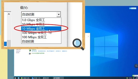 4、最后在【值】栏中点击【10Mbps全双工】后点击【确定】即可。
