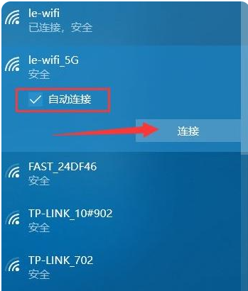 3,单击无线网络图标,选择网络,选择自动连接,单击“连接”。