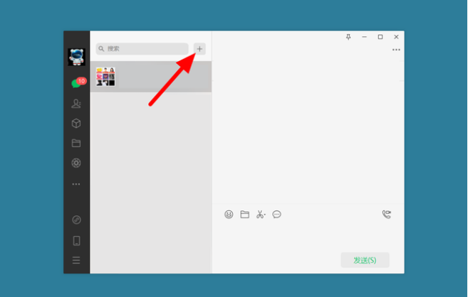 1、打开电脑微信界面,点击搜索栏右侧的【+】进入。
