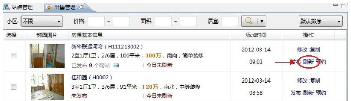 5、然后再点击房源操作区的刷新按钮,可以用于刷新房源最新信息传递给目标客户。