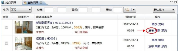 4、填写完成点击“发布”,这样房源信息就会发布到刚刚登陆的房源平台啦。