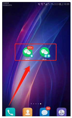 5.设置完成后我们就可以在桌面上看到两个微信图标,即说明我们可以同时登陆两个微信账号了。
