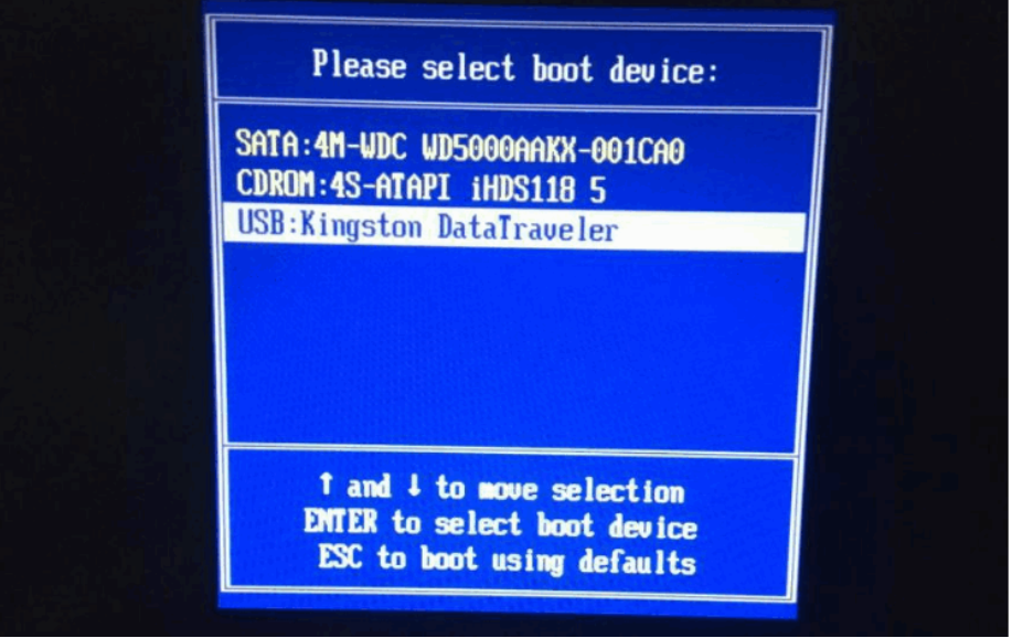 4、插入启动盘进坏了的电脑中,开机按启动热键直到进启动界面,选择u盘启动项回车确定进入到pe系统。