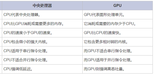 答:gpu和cpu的区别可以从下图就可以详细了解清楚,具体如下: