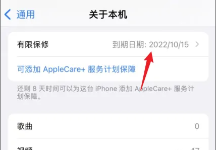 3、然后找到有限保修的到期日期,即可查看保修状态。