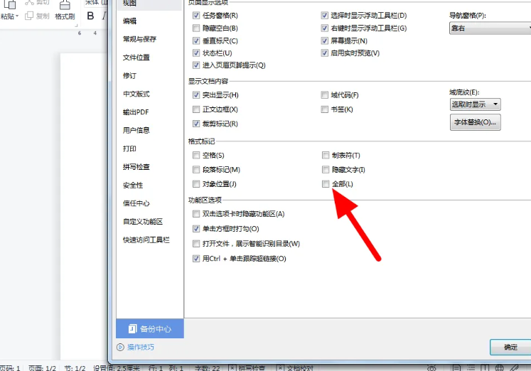 3、在格式标记下勾选【全部】,然后我们点击右下角的【确定】。